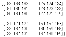 이 회색조 이미지 역시 데이터를 출력해보면..