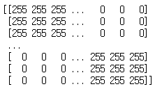 데이터를 출력해보면 흰색(255) 또는 검은색(0)으로 표현되는 것을 알 수 있습니다.