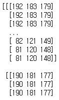 배열의 크기는 $512\times512\times3$ 로 각각 행, 열, RGB 값을 의미합니다.
