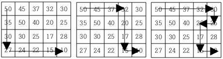 여행을 떠난 세준이는 지도를 하나 구하였다. 이 지도는 아래 그림과 같이 직사각형 모양이며 여러 칸으로 나뉘어져 있다. 한 칸은 한 지점을 나타내는데 각 칸에는 그 지점의 높이가 쓰여 있으