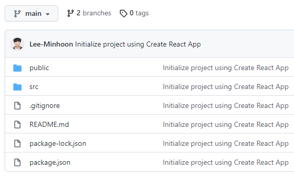 React Project를 생성함과 동시에 add와 commit은 되어있기 때문에 생략하고