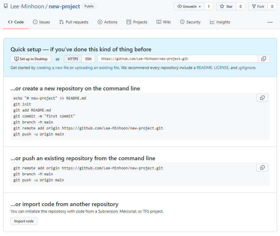 만약 저장소명을 아래와 같이 생성해주신다면