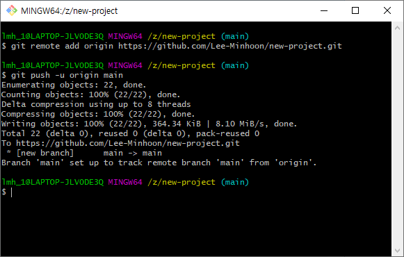 원격저장소와 연결한 뒤 push를 해줍니다.