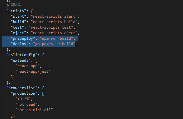 그런 다음 scripts에 위 두 명령어를 적어줍니다.