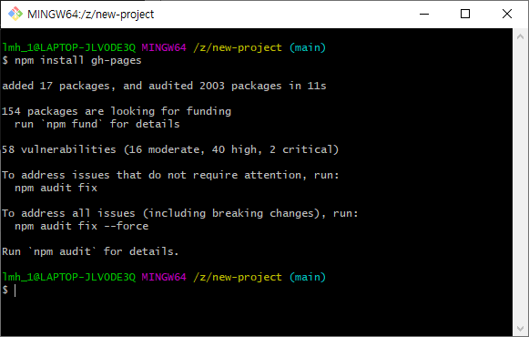 이 과정들을 한 번에 해주는 gh-pages라는 라이브러리가 존재하기 때문에