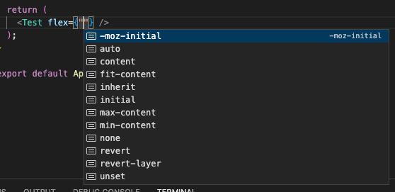 csstype 모듈에서 StandardProperties를 import해서 원하는 css property를 키값으로 넣어주면 된다.