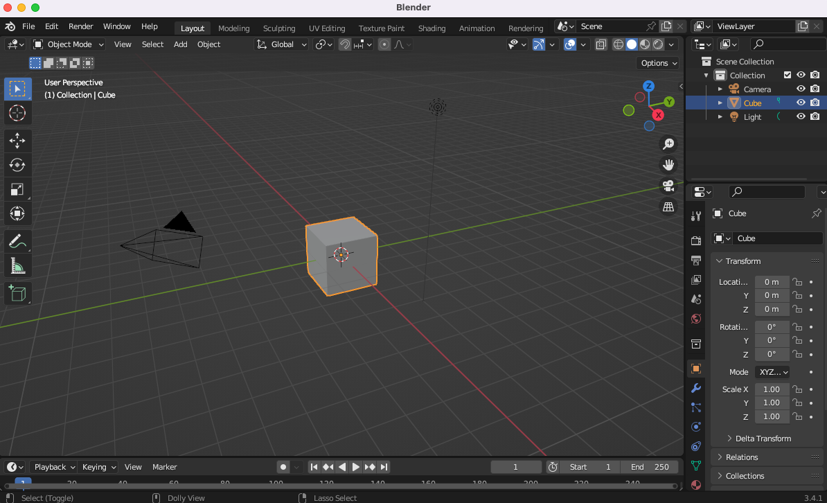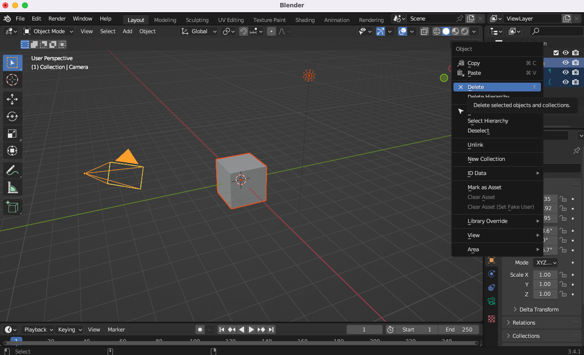 그리고 Blender 프로젝트에 있는 기본 개체 3개(Camera, Cube, Light)를 제거한다.