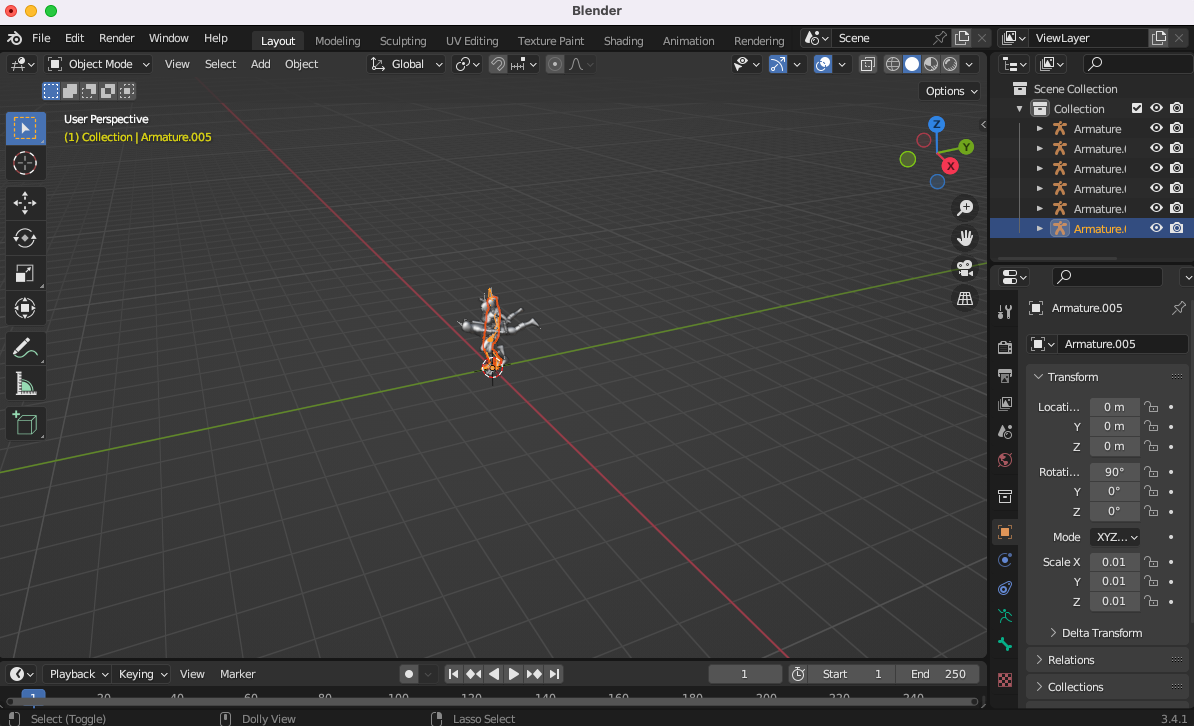 스샷에선 Armature.001 ~ 005가 해당한다.