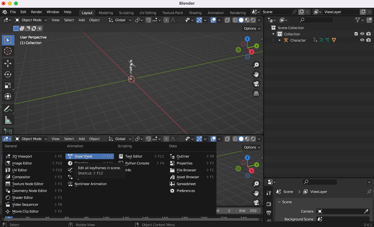 새 창을 Dope Sheet -> Action Editor로 바꿔주자.