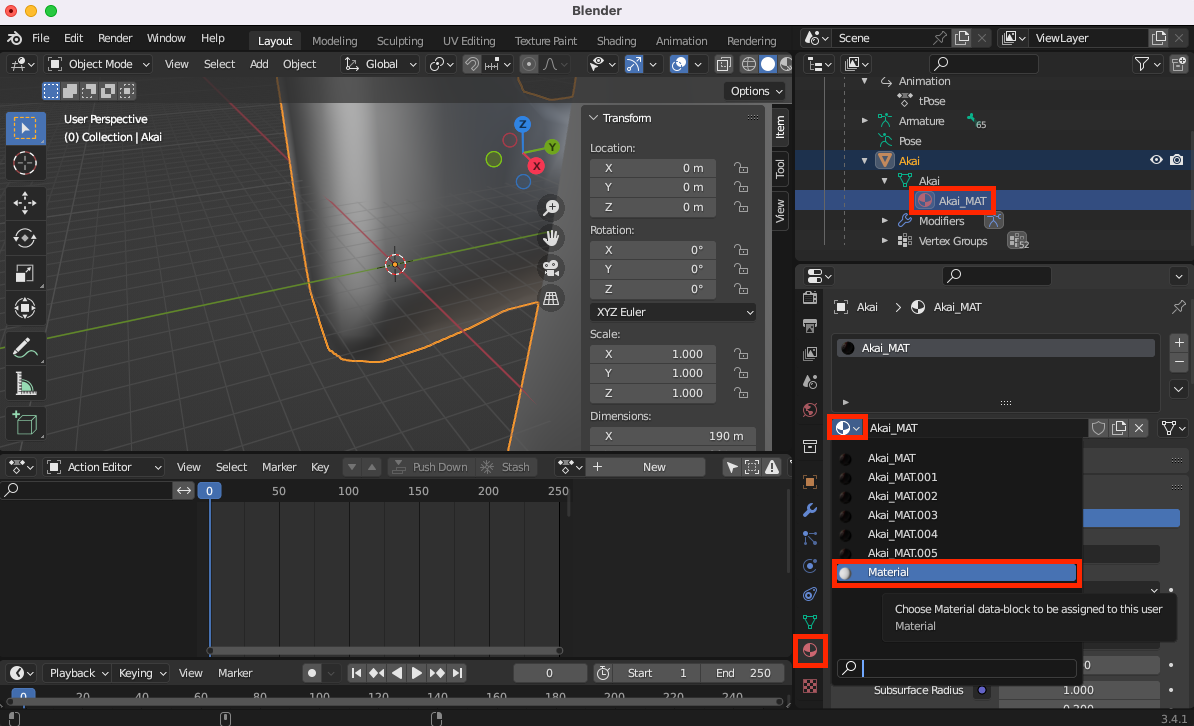 그런 다음 MAT(빨간색 모양)이라는 Meterial이 있다면, Babylon.js와 호환이 되지 않는다고 한다.