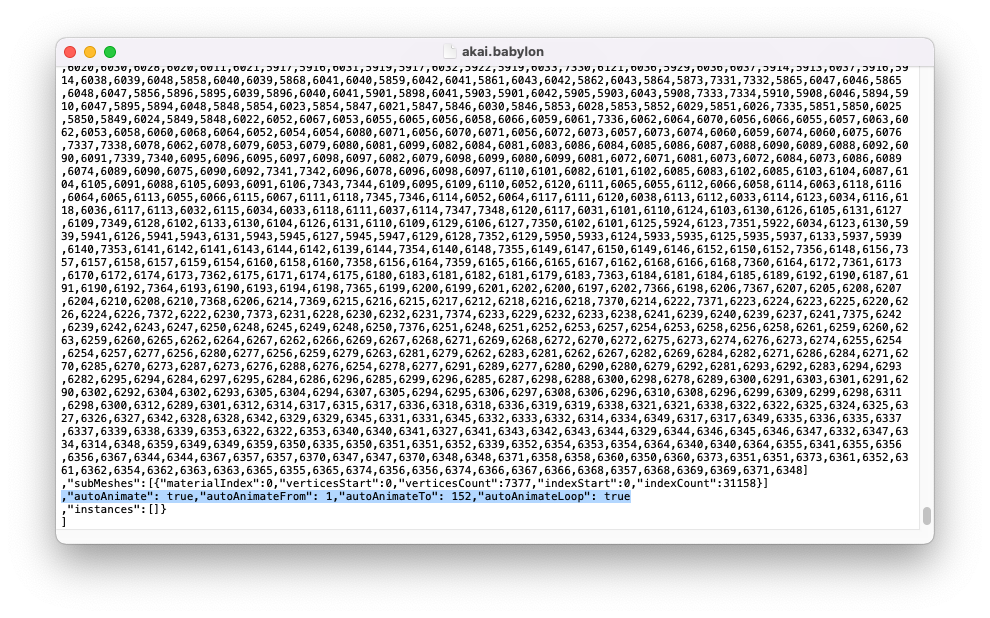구문을 텍스트 제일 밑의 subMeshes, instances 사이에 넣어주자.