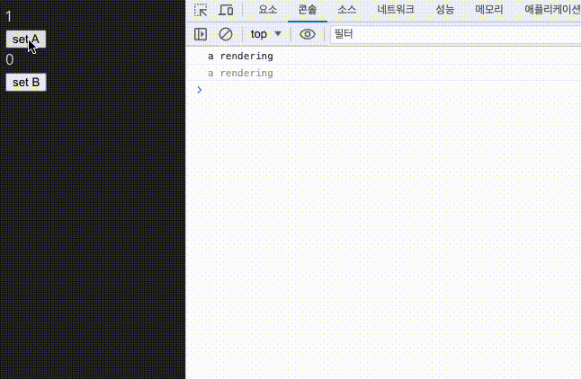 B 컴포넌트에서 a를 가져오지 않았지만, 리렌더링이 발생하게 됩니다.