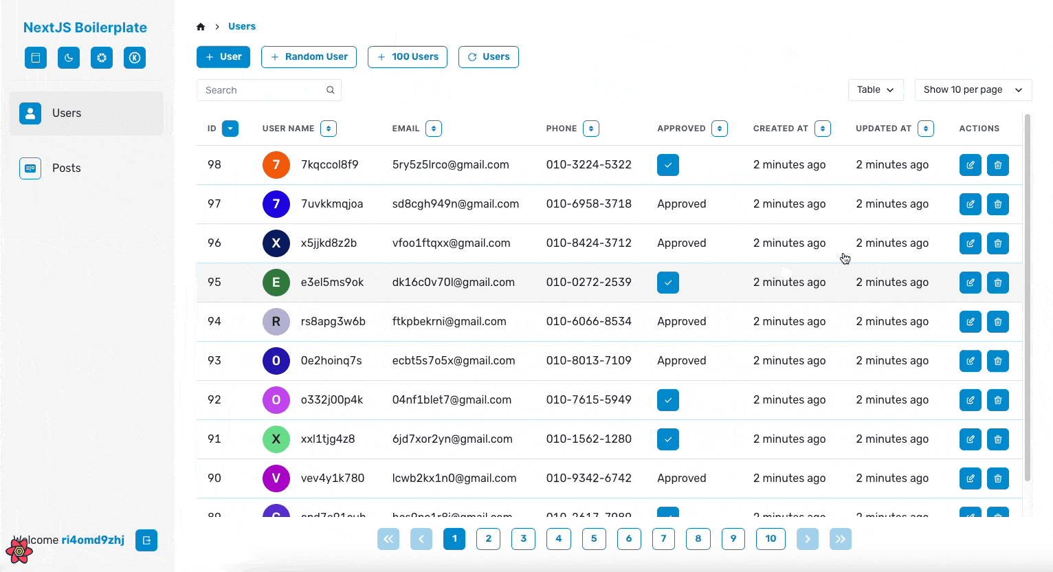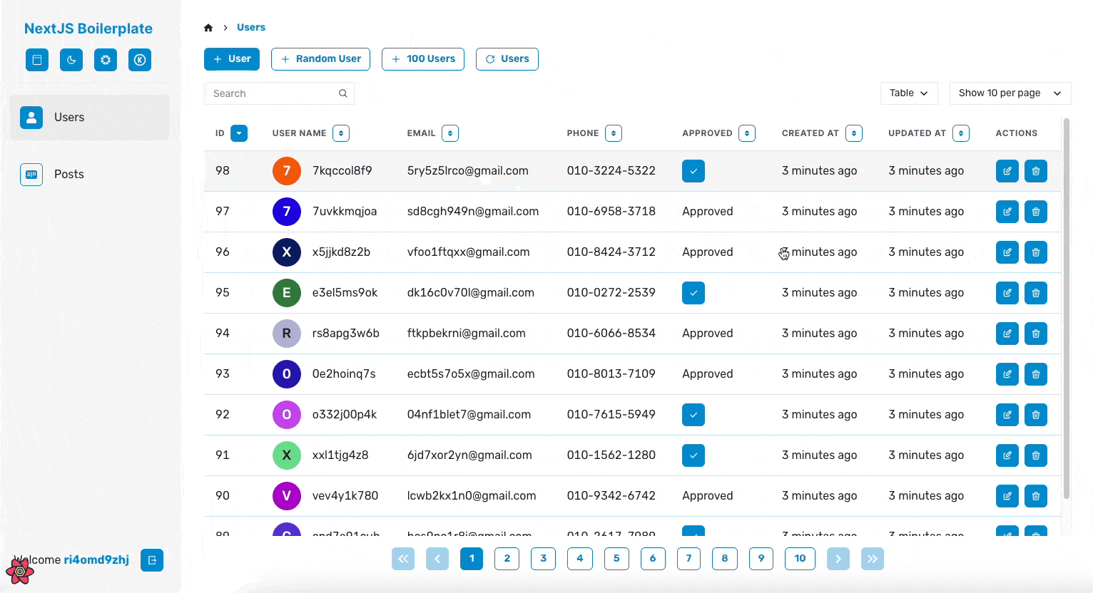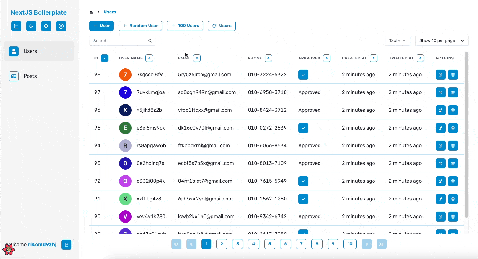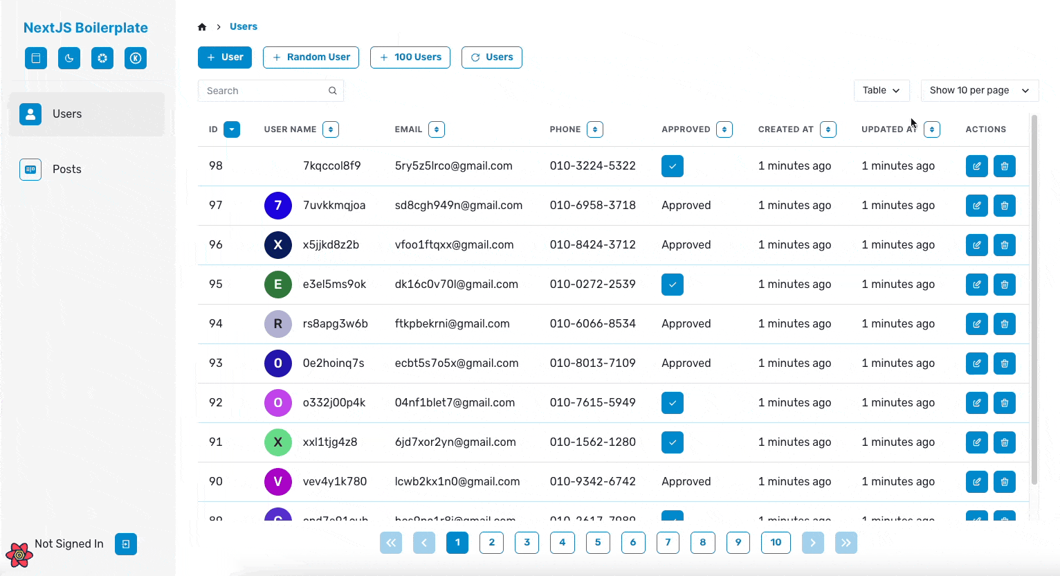 그래서 앞서 말한 공통적인 기능들이 최대한 많이 포함되도록 프로젝트 개발을 진행하였습니다. 이름은 NextJS Boilerplate지만 코드의 대부분은 CSR로 동작하게 되는데요. 저는 내부 툴이나 백오피스 같은 프로젝트를 Next.js가 아닌 React만으로 진행할 때도 많기 때문에, React Query를 적극 활용한 CSR 위주의 코드를 작성했습니다.