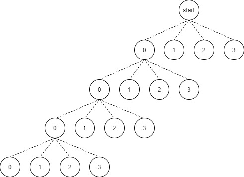 재귀 호출을 통해 완전 탐색을 구현하는 것만으로 해결이 가능한 문제입니다.