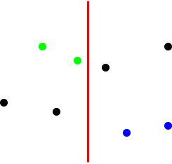 여기서 왼쪽의 경우에는 초록색 점들이 가장 가까운 두 점일 것이고,