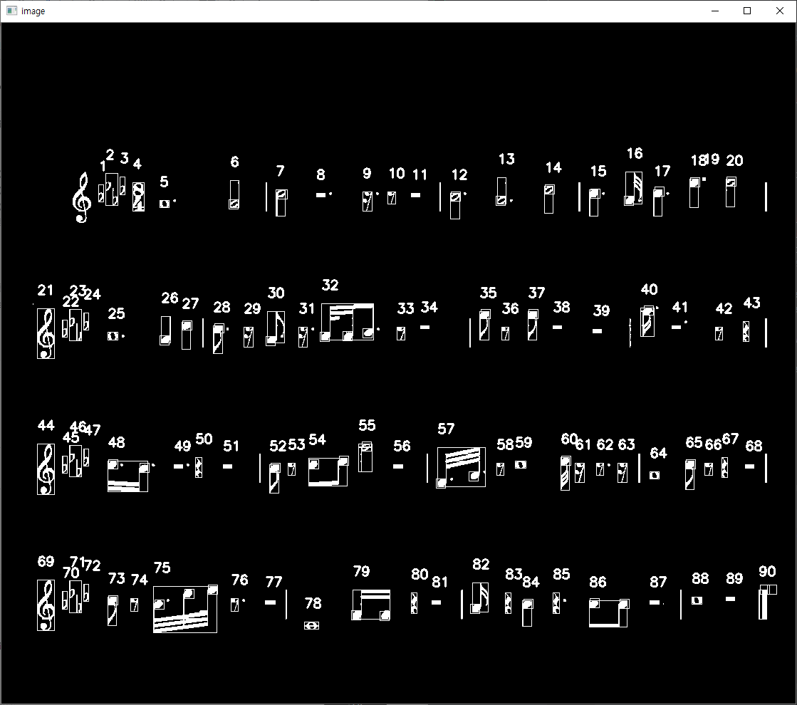 음표 인식은 악보의 구성요소들 중 가장 인식하기가 어렵습니다.