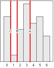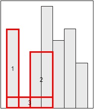 즉 0~3구간에서는 왼쪽에서 가장 큰 사각형(1번), 오른쪽에서 가장 큰 사각형(2번)